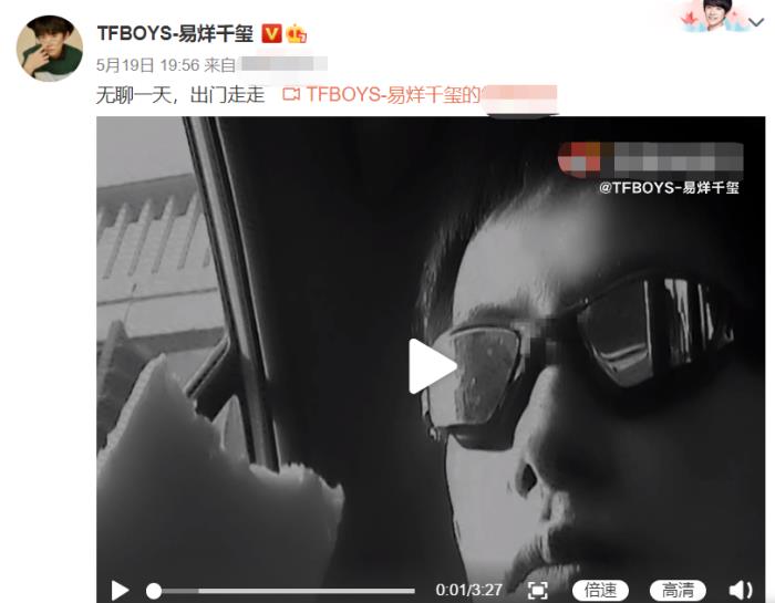 易烊千玺收获众多喜爱的原因之一也是他低调的性格,作为明星却没有明星架子,生活中非常接地气。此前易烊千玺也在社交平台上发布了自己上街的视频,视频中他戴着墨镜,吃着馒头,充满了生活的烟火气。