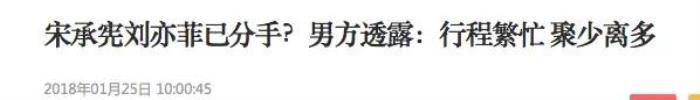 2018年1月25日,宋承宪方面以聚少离多为由证实与刘亦菲已经分手。