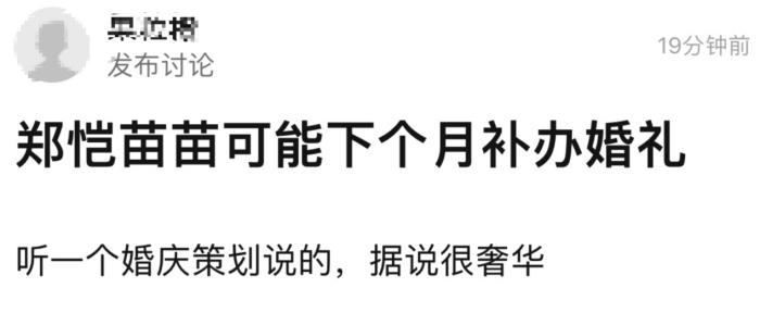 4月27日,有网友发帖爆料称郑恺和苗苗将会在下个月补办婚礼,引起网友热议。