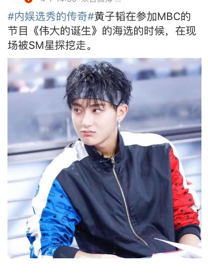 2010年底,攒够了履历表上各种光环的黄子韬,带着自己坚定的星梦,报名参加了MBC《Star audition 伟大的诞生》,还未登场便酝酿了一场“奇缘”,海选时就被SM的星探“撬走”签约成为自家练习生。