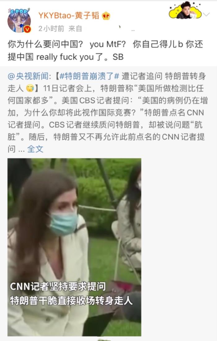 黄子韬怼人的小钢炮,也从不仅仅用在自己身上,面对那些抨击祖国的言论和行为,热血boy直接发射“原子弹”,大是大非面前从不退让半分。