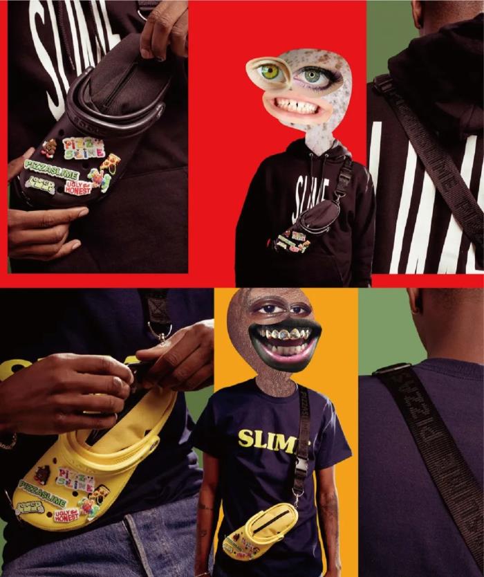 Crocs 近两年不断地与各种品牌联名,让洞洞鞋这一 “时尚灾难” 似乎有重新杀回时尚圈的趋势。此番与 Pizzaslime 携手带来新的联名,直接让洞洞鞋摇身一变成为了斜挎包,售价为300 美元(约2000人民币)的官方售价更是叫人大呼这波圈钱不要太好赚!真「粉丝的狂欢,平民的灾难」。