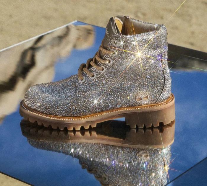 该系列Timberland经典黄色户外靴被注入JimmyChoo 最爱玩的施华洛世奇水钻,最大程度满足了工装靴的美甲梦,只是价格伤透了打工人的心。