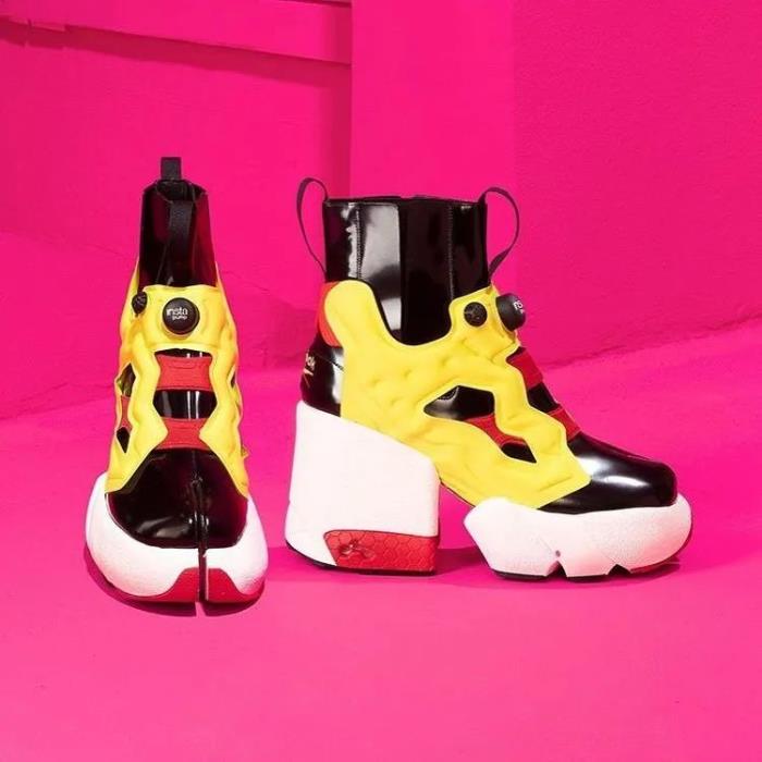 时尚「海盗爷」John Galliano将锐步充气鞋款Instapump Fury 与玛吉拉时装屋的经典的分趾鞋碰撞结合基因重组,推出10cm高跟鞋版本的时尚混血儿Tabi Instapump Fury运动鞋。这一创举堪称是数字时代人类与科技的对话,也是时尚杂交技术的成果汇演,是未来社会审美与审丑的游离,也是是锐步脱离养父阿迪的疯狂试探。是的,据不可靠消息来源:阿迪达斯集团准备出售旗下子品牌锐步,而在潜在买家里中国安踏集团似乎是最有可能承接这枚烫手山芋的倒霉蛋。