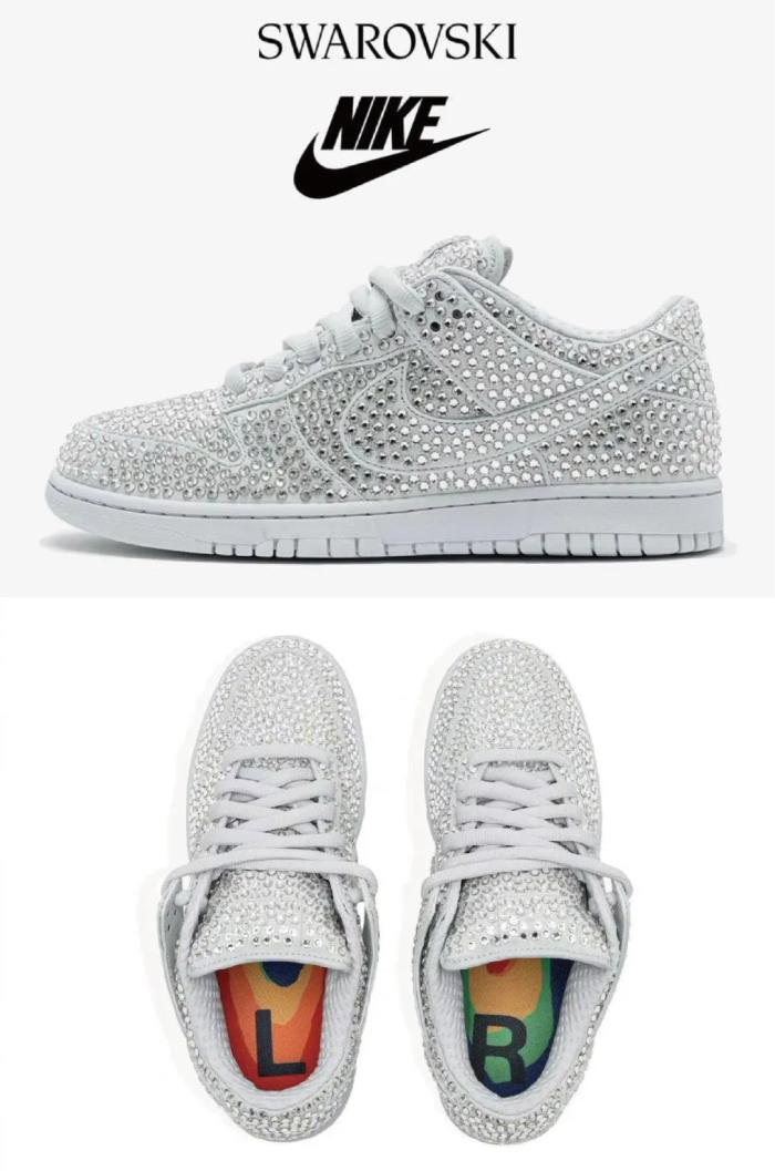 无独有偶洛杉矶街牌Cactus Plant Flea Market与Nike合作的全新联名Dunk鞋款,一样的用施华洛世奇闪钻铺满鞋身,但受困于技术瓶颈,成品相较于JimmyChoo却是华丽不足而密恐有余。但吃土女孩牌妹准备抓住这难得接地气的商机,果断下单义乌9块9包邮的水钻,家庭A货工厂即将营业。