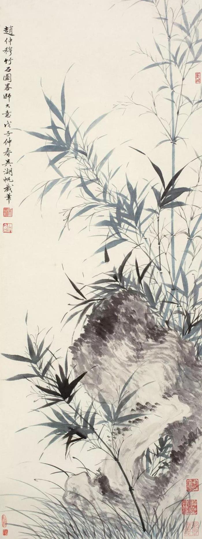 吴湖帆有近代画竹第一人之誉,他笔下的竹子从宋人双勾入手。