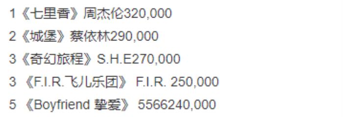 说完林俊杰就必须要有周杰伦,周杰伦每一张专辑都有一首甚至几首的金曲,从第一张专辑《Jay》后,周杰伦的专辑都能排在销量榜的前几名。这首《千里之外》应该不会有人没听过吧?