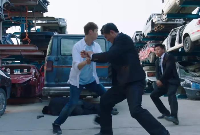 当同伴陷入困难并一筹莫展之际,是陈伟霆及时开车过来把反派撞死,营救同伴。