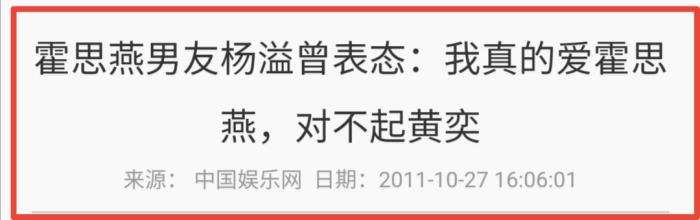 杨溢则称自己对不起黄奕,可是他真的很爱霍思燕。