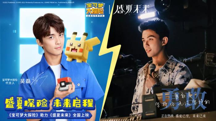 7月30日《盛夏未来》上线当日,在第十九届ChinaJoy上,《宝可梦大探险》官宣了明星代言人悬念图,8月6日,正式揭晓了吴磊代言人的新身份。