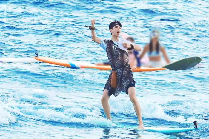 除了他固定担当MC的《天天向上》以外,网络综艺《夏日冲浪店》里,也有王一博在大海里“乘风破浪”的身影。