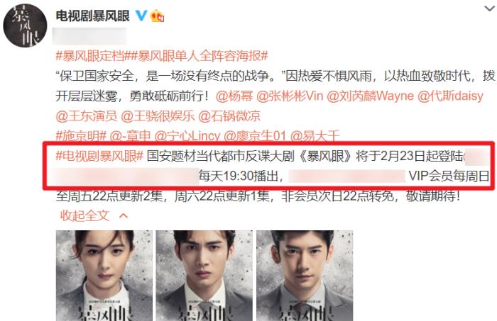 我们可以看到不少网友们对于《暴风眼》这部影视剧即将要开播的消息后,都纷纷表示期待起来了。