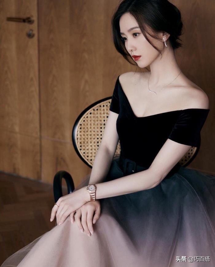 虽然圆领t恤衫就可以展现出刘诗诗的气质,但是当刘诗诗穿上这种V领礼服裙时,才是真正展现出了天鹅颈。