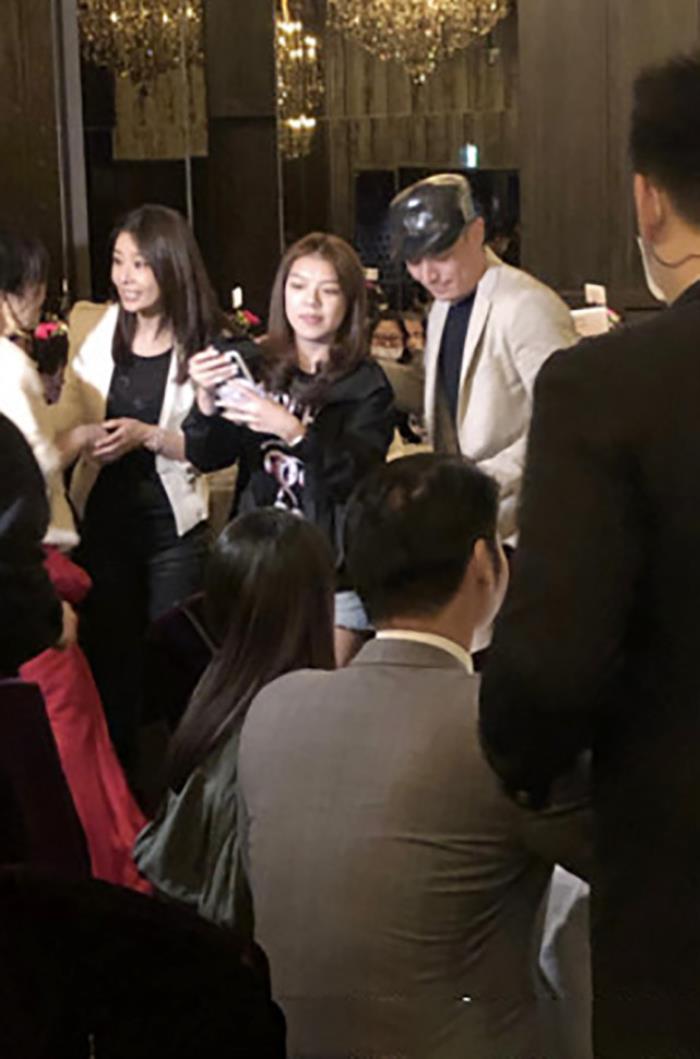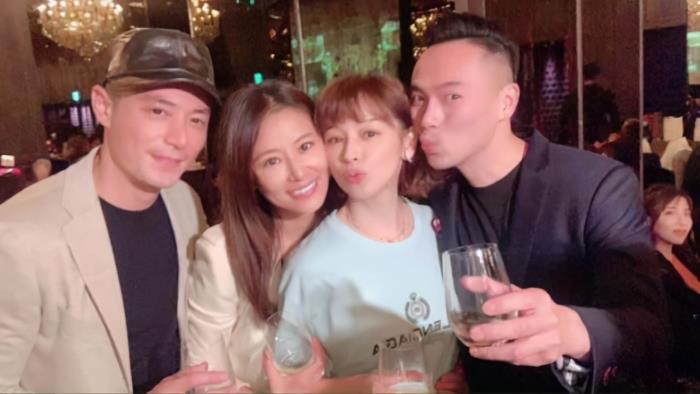 林心如夫妇作为宴会主人对各路好友进行热情招待,还与徐若瑄夫妇进行了亲密合影,照片中林心如与徐若瑄举止亲昵,宛若一对姐妹花,两位男士也是气色红润,心情看上去颇为愉悦,正所谓人逢喜事精神爽,尤其是站在一旁的霍建华,整个人的状态明显好到出奇。