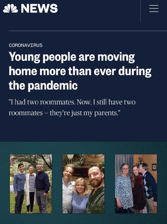 ▲NBC:疫情导致回家“啃老”的年轻人创历史新高