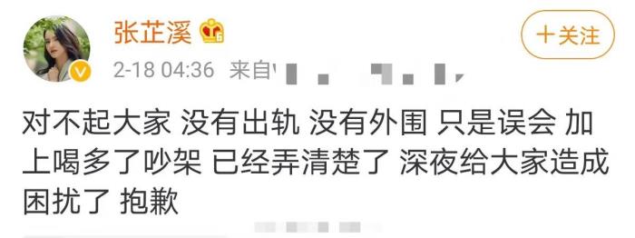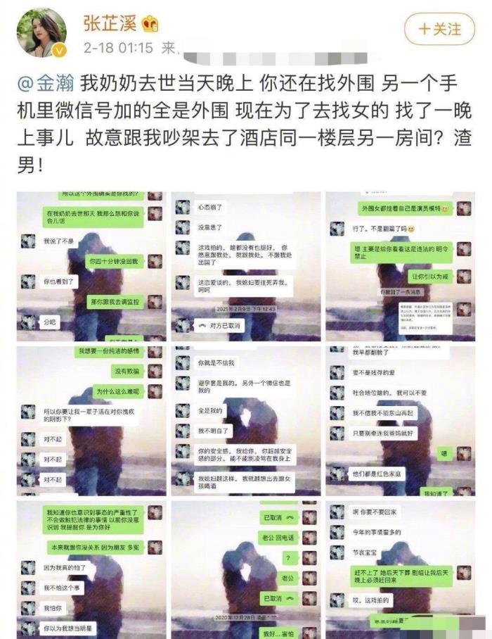 但过了3小时后,张芷溪又发文否认金瀚出轨,并直言自己喝多了。