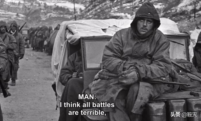 除了极其珍贵的战场纪录镜头,这部电影也采访了当时战场上的当事人,这些人都已经是老头了,但是被采访的时候,精神很好,特别是提到这一段战争,一下子就来了兴趣。
