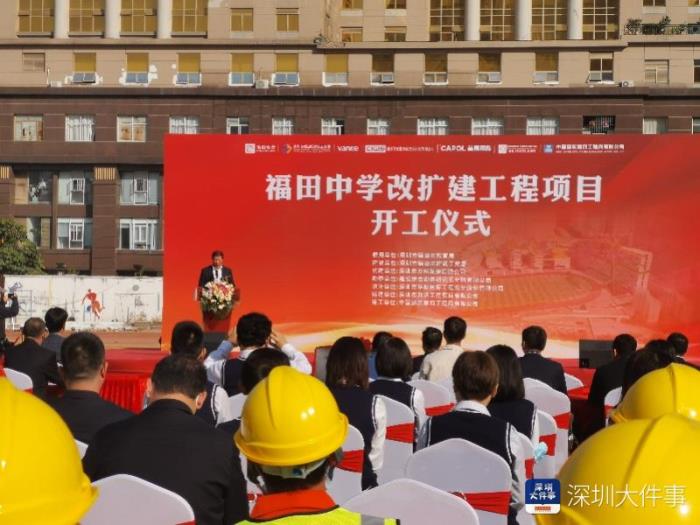 南都讯 记者谢萌 12月28日,深圳市福田中学改扩建工程项目开工仪式在福田中学田径场举行。福田中学是深圳特区内规模最大的高级中学之一,将在占地41461平米的原校址通过重新的校园设计、改扩建,实现学位规模从1900向3000的扩充,同时增加完全满足3000学生住宿的空间。当天区、街道相关领导,福田中学师生代表以及工程建设相关单位代表到场见证项目开工。