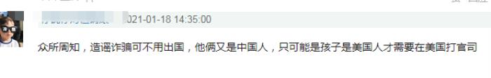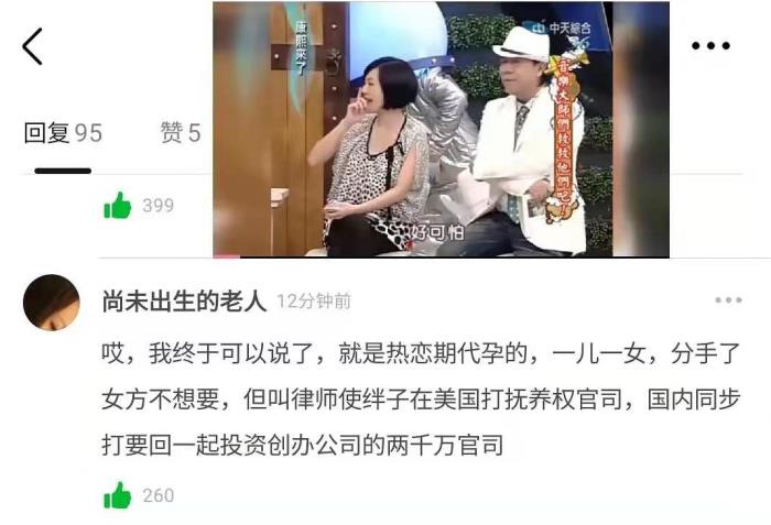 随后,有更多网友出来爆料,称两人热恋期代孕的,有一儿一女,分手后女方不想要,叫律师使绊子在美国打官司,同时在国内打官司要回一起投资创办公司的两千万。