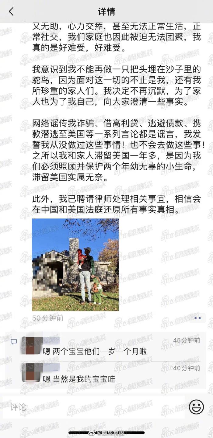 原本回应辟谣是正常操作,但张恒放出的照片,却引发网友讨论。而张恒的回应也很巧妙,对于这一年多的沉默,张恒表示是因为自己身在美国,而对于滞留美国的原因,他表示是因为要照顾两个无辜的小生命。