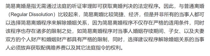 更重要的是,上面显示两人打的是简易离婚官司!而简易离婚官司的解释如下: