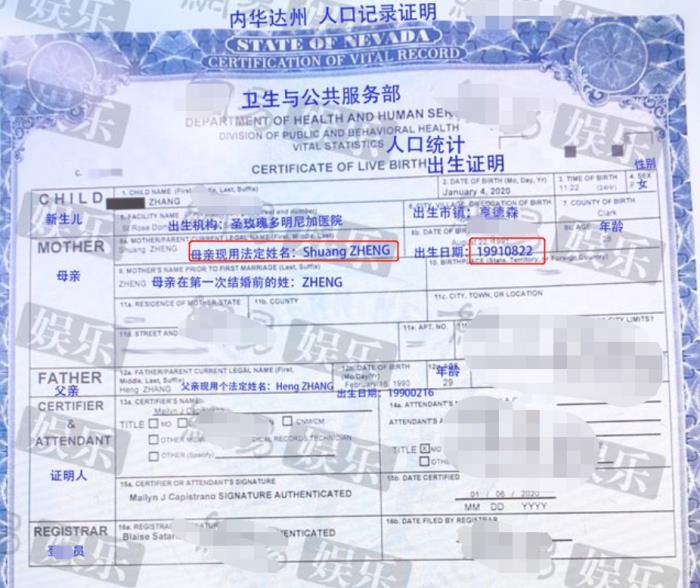 随后美国官网就被查到了相关文书信息,两个孩子出生证上母亲一栏,写着“ZHENG SHUANG”!