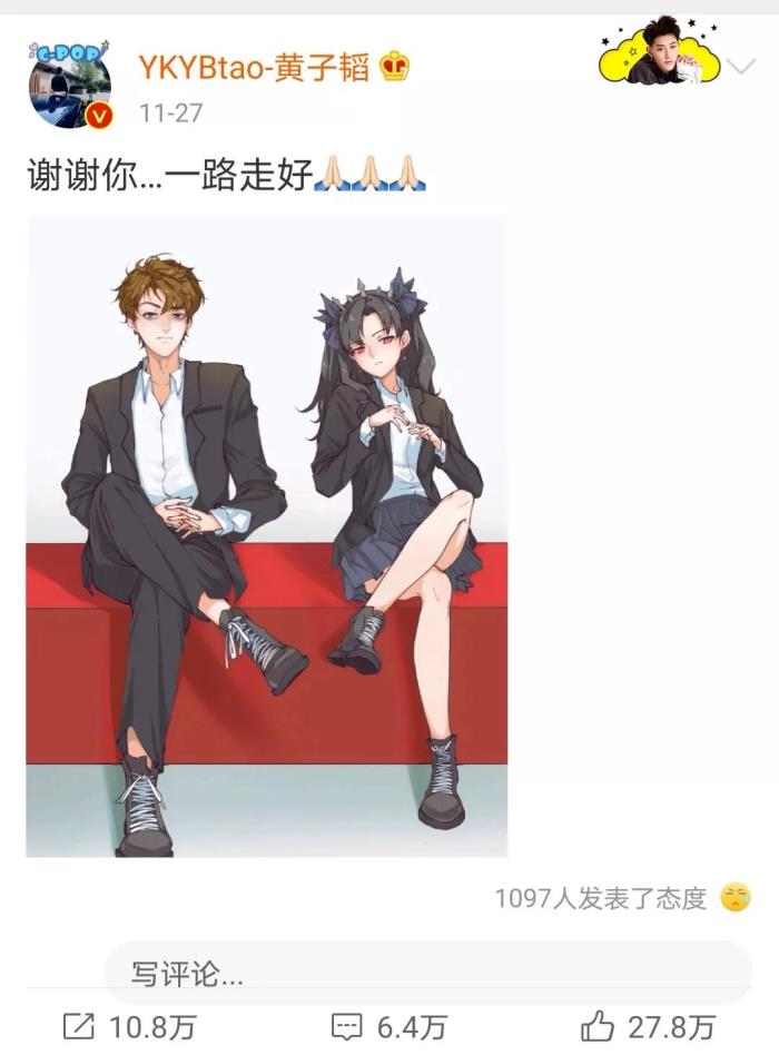 11月27日,艺人黄子韬突然发了一条“谢谢你...一路走好”的状态,引发讨论。
