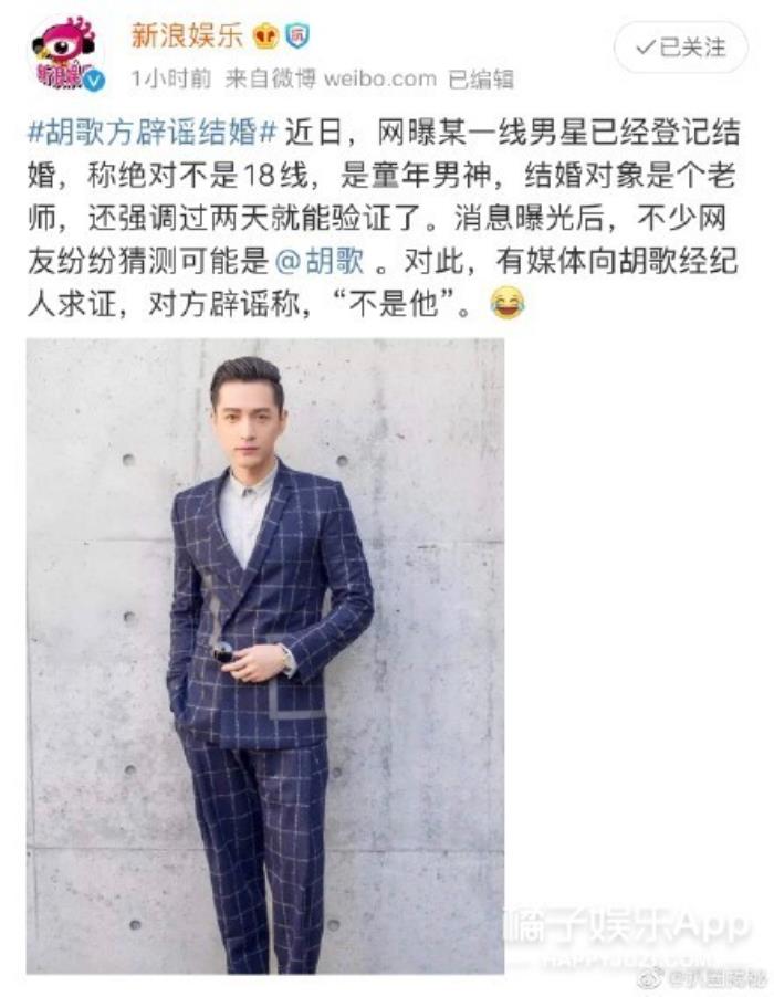 又有人半夜发文称胡歌和薛佳凝结婚了,