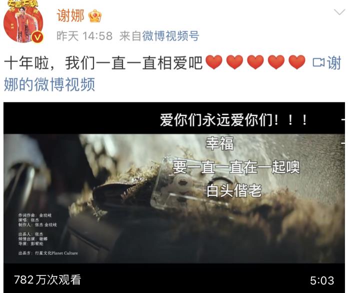 在9月26日的时候,张杰在自己的社交媒体平台上发文表示“从2011年到2021年,十年牵手继续向前”,甜蜜告白妻子“爱你在未来的每个十年”,十分让人动容。