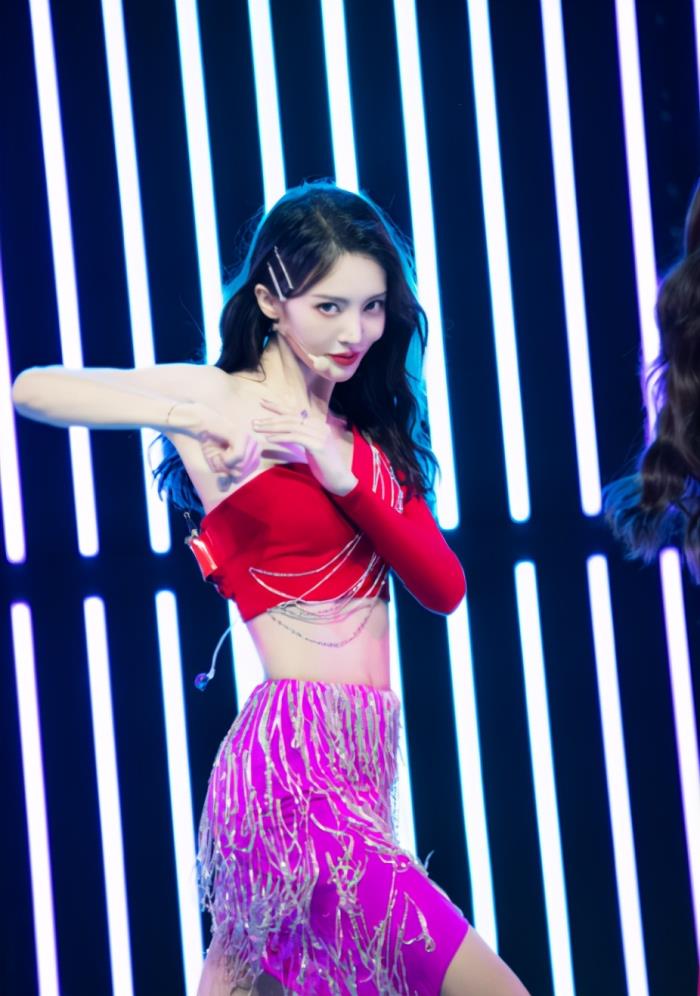 之前在节目里面表演的金晨也经常给人一种眼前一亮的感觉,照片里面的她穿着一件红色的斜肩露脐上衣,搭配上玫红色的半身裙。半身裙上面还有很多银色的流苏,跳舞的时候也会显得衣服很有灵动的效果。主要是金晨的身材高挑,加上又瘦,在舞台上也显得身材比例非常的逆天。长卷发更是迷人,这样的小姐姐着实也是娱乐圈里面的风景线了。