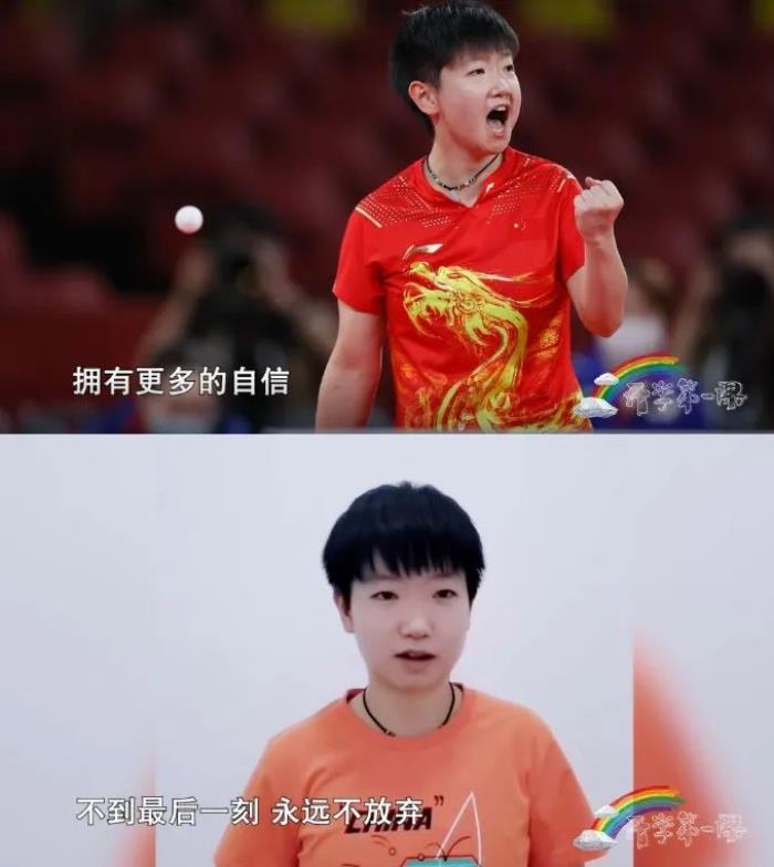 孙颖莎(东京奥运会乒乓球女子团体冠军、东京奥运会乒乓球女单亚军):新的学期到来,希望同学们能在拥有丰沛知识的同时,拥有更多的自信,不到最后一刻,永远不放弃。