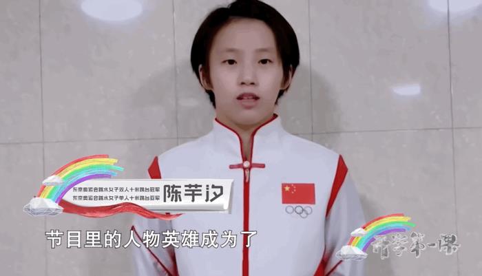 在备战奥运的时间里,陈芋汐把《开学第一课》中的英雄先辈当成不怕困难、积极面对挑战的榜样,“曾经我也是《开学第一课》的观众,节目里的人物英雄成为了我战胜困难的力量,积极面对困难,勇于接受挑战,向着自己的目标勇敢地前进”