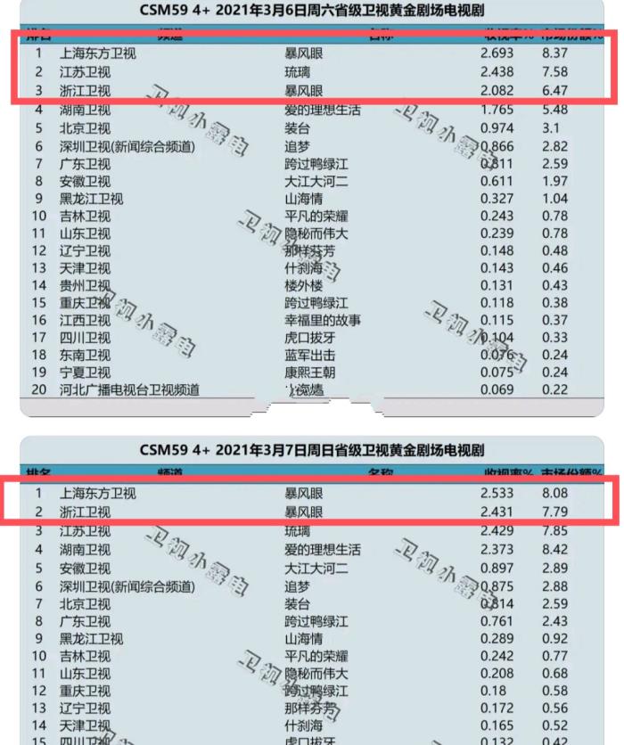 不管是东方卫视,还是浙江卫视,这部剧的收视率都能稳定在2.5以上,市场份额不用说,更是达到了惊人的8%。