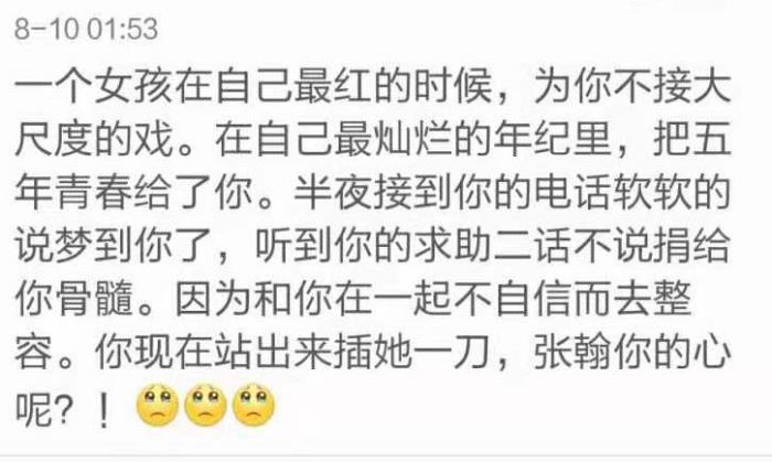 她单方面宣布恋情,不跟对方商量没有错。她去整容,也是因为张翰没有给予她足够的安全感。