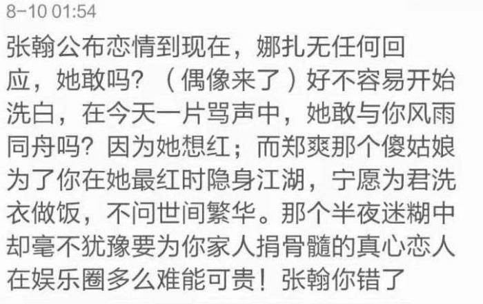 其实,关于张翰和郑爽的这段恋情,我始终想写点什么。