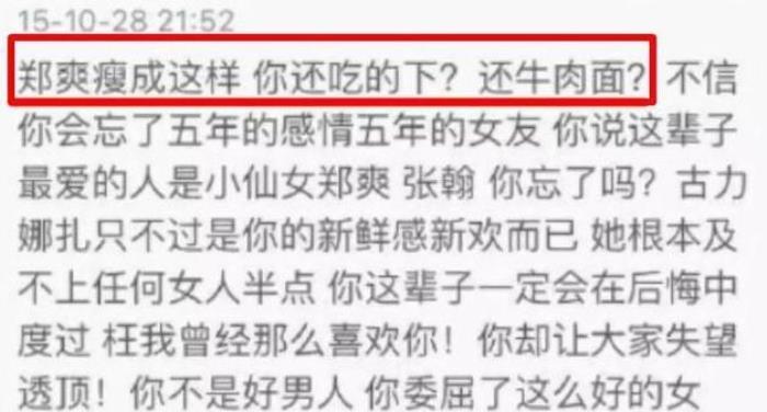 从2014到2021年,7年的时间,但凡郑爽上热搜,张翰就会被波及。哪怕张翰吃一个牛肉面,都有人去骂张翰。