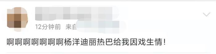 值得注意的是,迪丽热巴将手怀抱在杨洋肩头,双方互相甜蜜对视,眼睛里能看见对方的笑容,迪丽热巴把头埋进杨洋的怀抱里,两人周围的气氛变得微妙又甜腻,像极了一对处在热恋期的普通小情侣。