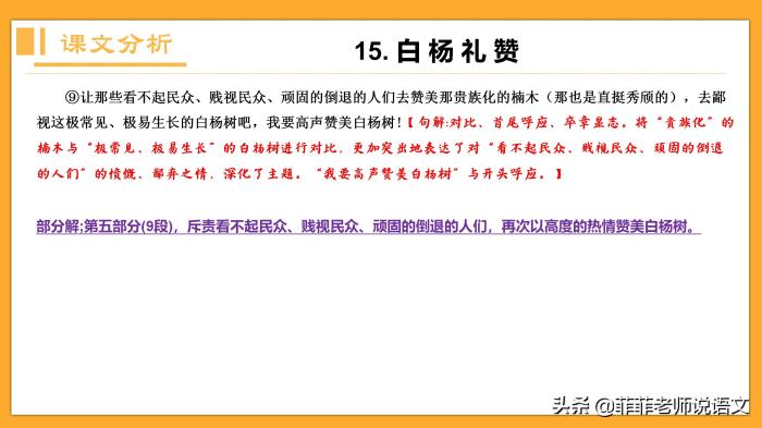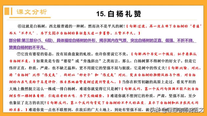 一、作者写这篇文章真正的目的是为了借赞美白杨树来表达对北方农民的崇敬和赞美,那他为什么不直接赞美北方农民呢?