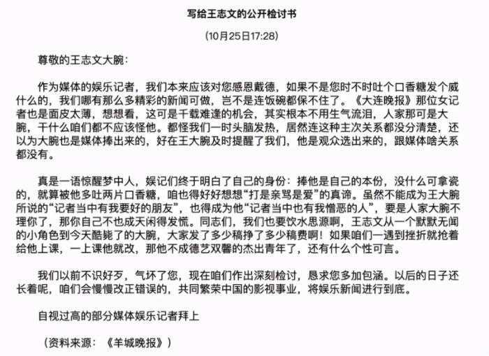 当年他和媒体关系最紧张的时候,有30余家媒体联名写过一份《写给王志文的公开检讨书》共同声讨他。