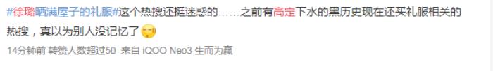 甚至还有人提到了徐璐早前因为高定被公开批评的事情,起因是因为徐璐团队没有认真看过租借合同,就把设计师辛辛苦苦设计的高定服装穿下水。