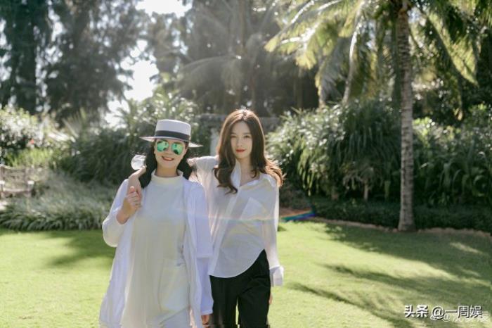 这次沈梦辰晒的照片跟以往的画风不太一样,父母的穿着也是主要以黑白色为主,沈梦辰上半身穿的是白衬衫,下半身穿的是黑色的裤子,看起来非常的少女,父母也化了妆,而且也很年轻,沈梦辰跟妈妈一起拍照,就像是两姐妹的既视感。