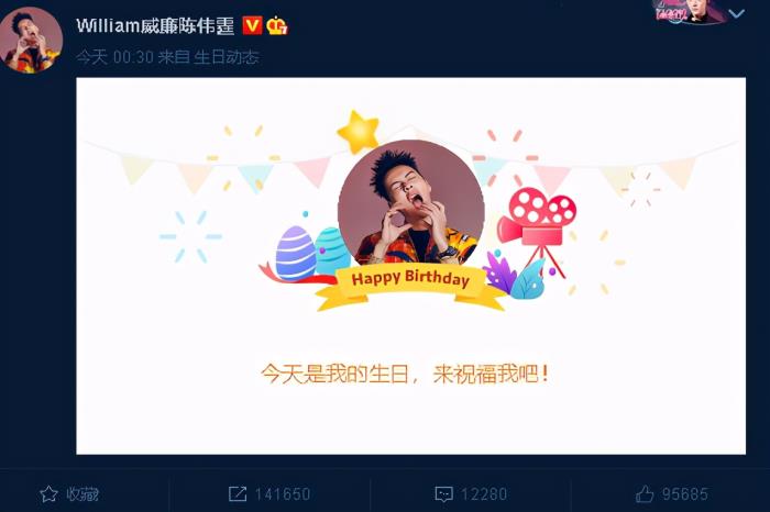 平时喜欢给大家带来欢乐,喜欢给大家带来能量的陈伟霆,自然也不会忘记发布自己的生日照片。