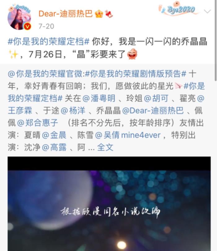 最近迪丽热巴的新剧《安乐行》宣布开机正在拍摄中,热巴也在社交平台中为电视剧积极宣传,这部电视剧还有龚俊,刘宇宁等演员的加持。网友们对于迪丽热巴和刘宇宁自《长歌行》后的二度合作也感到非常的期待,不仅如此,迪丽热巴和杨洋主演的电视剧《你是我的荣耀》也即将播出。