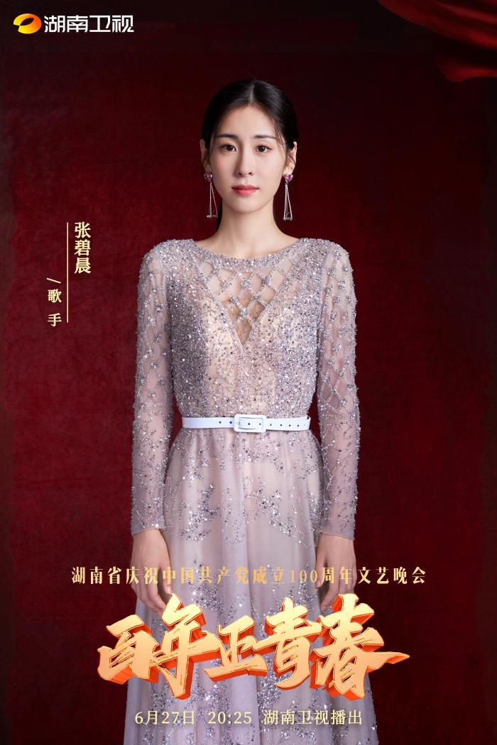 6月27日晚,湖南省庆祝中国共产党成立100周年百年正青春文艺晚会20:25湖南卫视正式播出,正能量青年歌手张碧晨和歌唱家石倚洁共同献唱歌曲《不忘初心》,以歌声为祖国献上赞歌,祝福祖国繁荣昌盛!