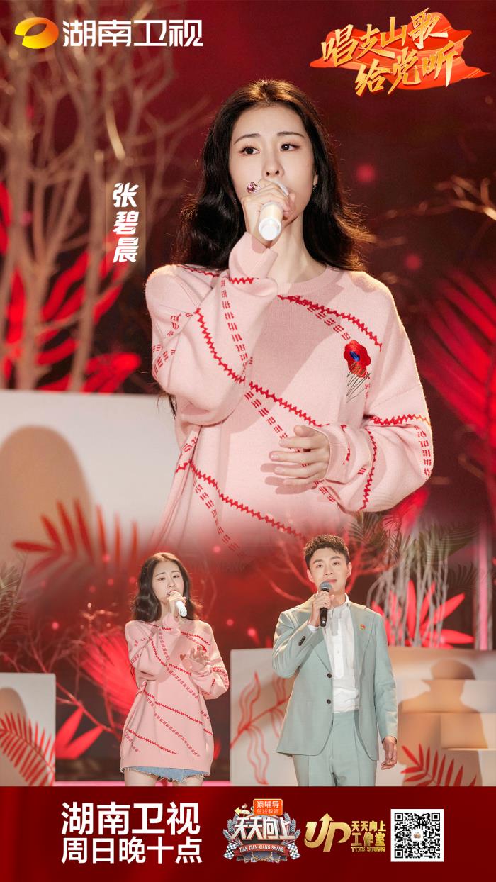 当晚,天天向上建党特别节目播出,张碧晨和北京眼科大夫陶勇医生共同为大家带来歌曲《映山红》,跨界合作,实力演唱,深情表达对英雄们的崇敬之情,致敬无私奉献辛勤工作的医务工作者!