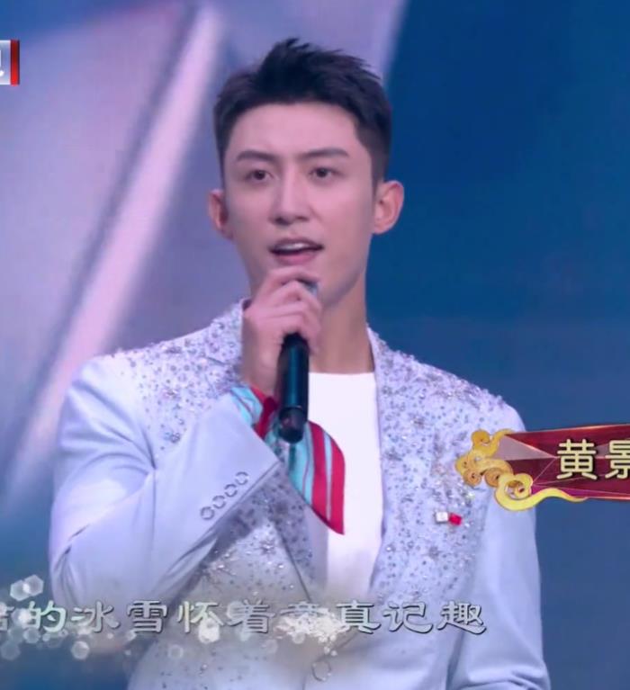 而黄景瑜则身穿淡蓝色西装,气质儒雅绅士。身材高挑非常有气场,跟肖战、小鬼等人合唱歌曲。
