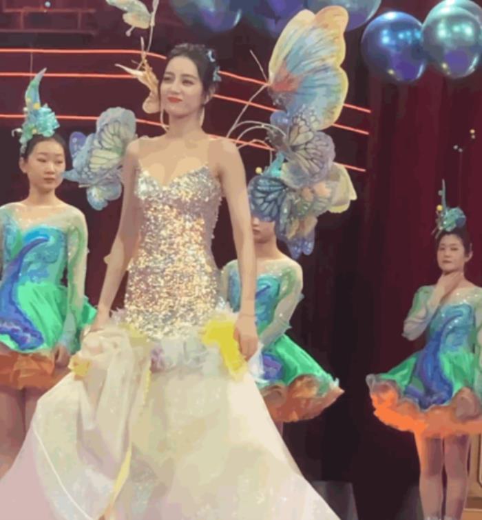 第二套则是化身春姑娘,穿着银光裙出场亮相。衣服上的蝴蝶翅膀,又灵动又甜美,不知是不是有好友黄景瑜在,热巴的心情似乎也不错,笑容灿烂。