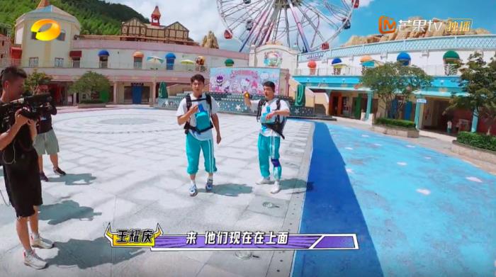 吴奇隆和王耀庆玩捉迷藏游戏的时候一起去做任务,有一个任务是需要在摩天轮中头顶一碗水保持平衡,摩天轮停下来的时候,水在要求水位线的话,他们就能够获得一张返场卡。