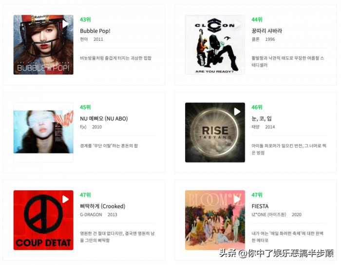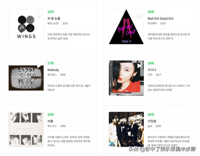 8月27日,韩国知名音乐平台Melon联合韩国35位知名乐评人,公布了有史以来“100首韩国最佳流行音乐歌曲”的名单。