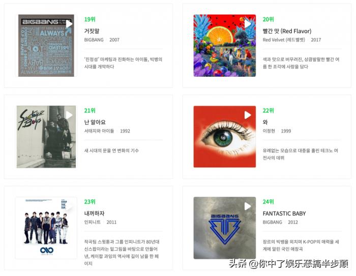 19-24:Big Bang的《Lies》、Red Velvet的《Red Flavor》;